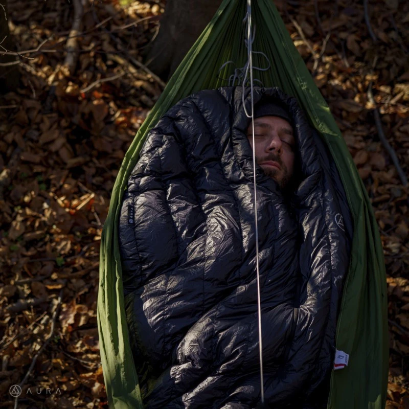 Le OXY 200/860 de la marque polonaise Aura, est un sac de couchage ultraléger et polyvalent, avec un design épurée. Il dispose d’une forme ovale, simple et innovante. Cette géométrique offre un espace confortable, tout en minimisant le poids. Il est réalisé avec un tissu ultraléger, un Toray Airtastic de 20 g/m².