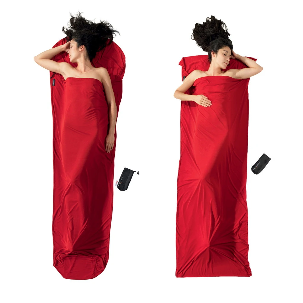 De forme momie, il est plus léger, légèrement plus compact et mesures 220 centimètres de long par 80/60 centimètres. Le Mummy Liner possède une capuche avec un cordon de serrage, une large ouverture en tête et un espace pour les pieds préformé. Il n’a pas d’ouverture latérale pour une meilleure isolation. Il est idéal pour une utilisation dans un sac de couchage outdoor.