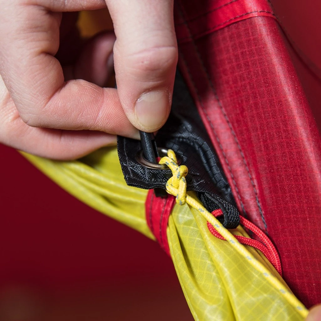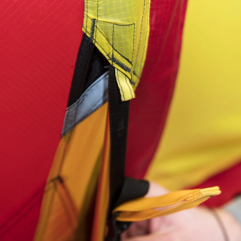 Le montage est simple, les 4 arceaux s’insèrent dans des fourreaux du double-toit, et la chambre vient se fixer ensuite. Elle peut également rester fixer au double-toit, pour un montage plus rapide.