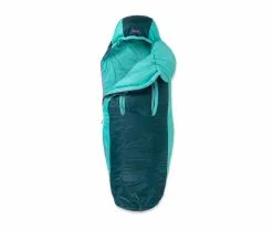 Le sac de couchage Forte Women’s 35 de Nemo dispose d’une isolation synthétique en Primaloft Rise à 80% recyclé. Sa forme particulière en cuillère permet d’obtenir plus d’espace au niveau des coudes et des genoux par rapport à un sac de couchage de forme momie. Ce modèle répond au constat que 70% des personnes préfèrent dormir sur le côté.
