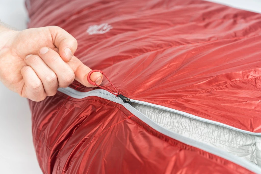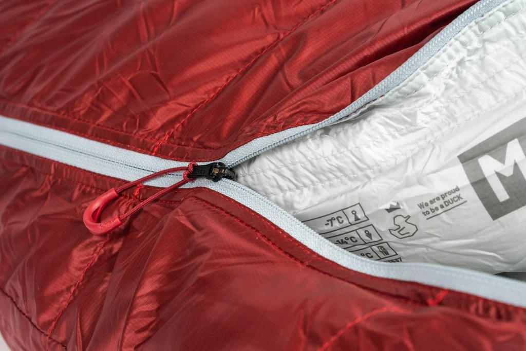 Le tissu du Dpro 290 est en Pertex Quantum Ripstop traité DWR pour l’humidité. En plus de cela, le pourtour du visage dispose d’une isolation en fibre synthétique Primaloft qui est plus adapté que le duvet à l’humidité expirée durant la nuit. La fermeture éclair semi-automatique remonte sur le dessus permettre de l’atteindre plus facilement. Cela permet aussi d’obtenir une construction plus anatomique au niveau des épaules, ne nécessitant pas de velcro pour fermer l’ouverture. Muni d’un bloqueur, une fois celui-ci enclenché, le curseur de la fermeture éclair ne coulisse plus.