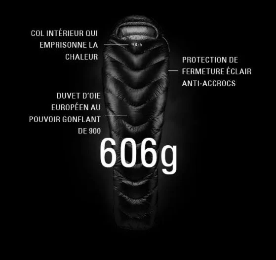 La température de confort est de -2°C pour ce sac de couchage. Les cloisons en forme de trapèze limitent au maximum les déperditions. Ses compartiments en croissant vers le bas permettent maintenir le duvet au centre du corps et de garantir un bon niveau de chaleur. Sa forme momie et son espace angulaire pour les pieds le rendent très spacieux pour son poids.