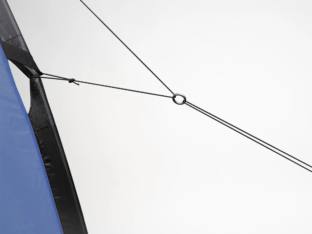 La tente Samaya 2.5 est à la pointe de l’innovation. Le sol est en Dynnema, avec des renforts en Cordura dans les angles. Les haubans réfléchissants sont également en Dyneema. La structure est constituée par 3 arceaux DAC FeatherLite NFL de 8,7 millimètres. Pour l’ancrage, la tente est fournie avec les toutes dernières sardines en plastique incassables de SwissPiranha. Les fermetures éclair sont évidemment signé YYK, avec le modèle Aquaguard résistant aux intempéries. Une tente véritablement robuste.