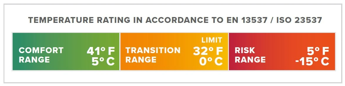 Sac de couchage douillet avec une température de confort de +5°C, en duvet de canard hydrophobe.